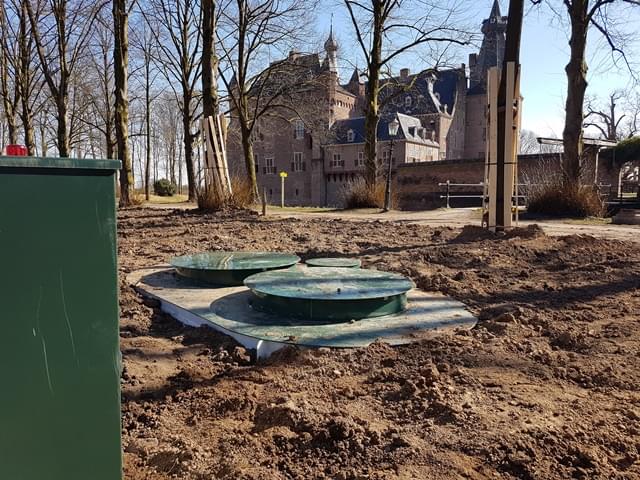 Er is geen riolering aanwezig in de directe omgeving en na bestudering van alle opties bleek de economisch meest passende oplossing het realiseren van een afvalwaterzuivering in de directe omgeving van het kasteel. Na een eerste inventarisatie en ontwerpfase mocht Copier Water van de gemeente Renkum de opdracht ontvangen voor de realisatie die in 2018 is afgerond.